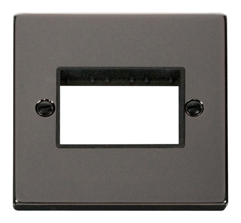 Sold by Scolmore Click, this is the VPBN403BK Frontplate 1G 3Aperture Black Gasket Victorian. This is a Black Nickel front plate featuring a contemporary, square edge profile designed to look incredible against any style of interior décor. The Black Nickel range is manufactured from stainless steel. All Click Deco switches are modular in design, and therefore can be customised with alternate switches if needed.