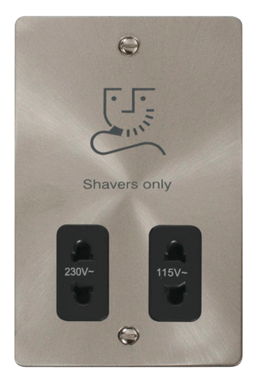 Sold by Scolmore Click, this is the FPBS100BK Shaver Socket 115/230V. This is a Brushed Steel shaver socket featuring a contemporary, square edge profile designed to look incredible against any style of interior décor. The Brushed Steel range is manufactured from stainless steel. All Click Deco switches are modular in design, and therefore can be customised with alternate switches if needed.