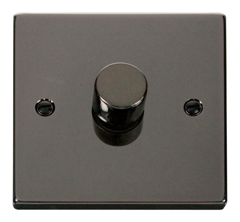 Sold by Scolmore Click, this is the VPBN140 Dimmer Switch 400W. This is a Black Nickel dimmer switch featuring a contemporary, square edge profile designed to look incredible against any style of interior décor. The Black Nickel range is manufactured from stainless steel. All Click Deco switches are modular in design, and therefore can be customised with alternate switches if needed.
