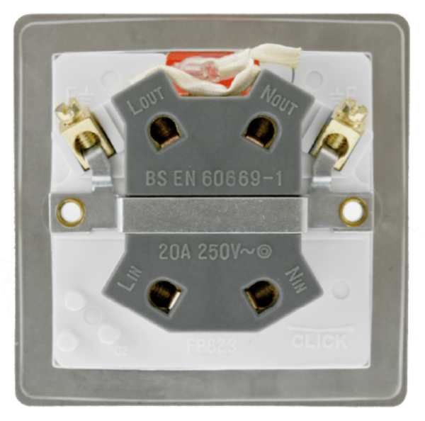 Sold by Scolmore Click, this is the FPBS723WH Switch Double Pole Neon 20A White Insert. This is a Brushed Steel switch featuring a contemporary, square edge profile designed to look incredible against any style of interior décor. The Brushed Steel range is manufactured from stainless steel. All Click Deco switches are modular in design, and therefore can be customised with alternate switches if needed.