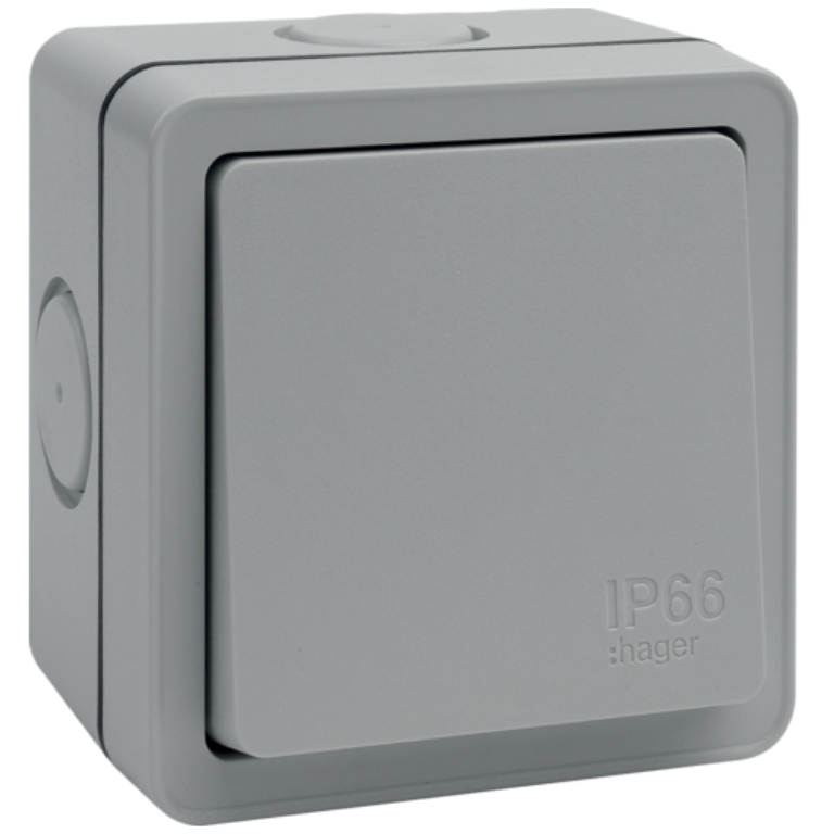 Sold by Hager Sollysta, this is the WXPPS12 IP66 10AX 1 Gang 2 Way Switch. It has been designed to be used outdoors as its catered for all weather conditions due to its protective seal that blocks out water and dust.